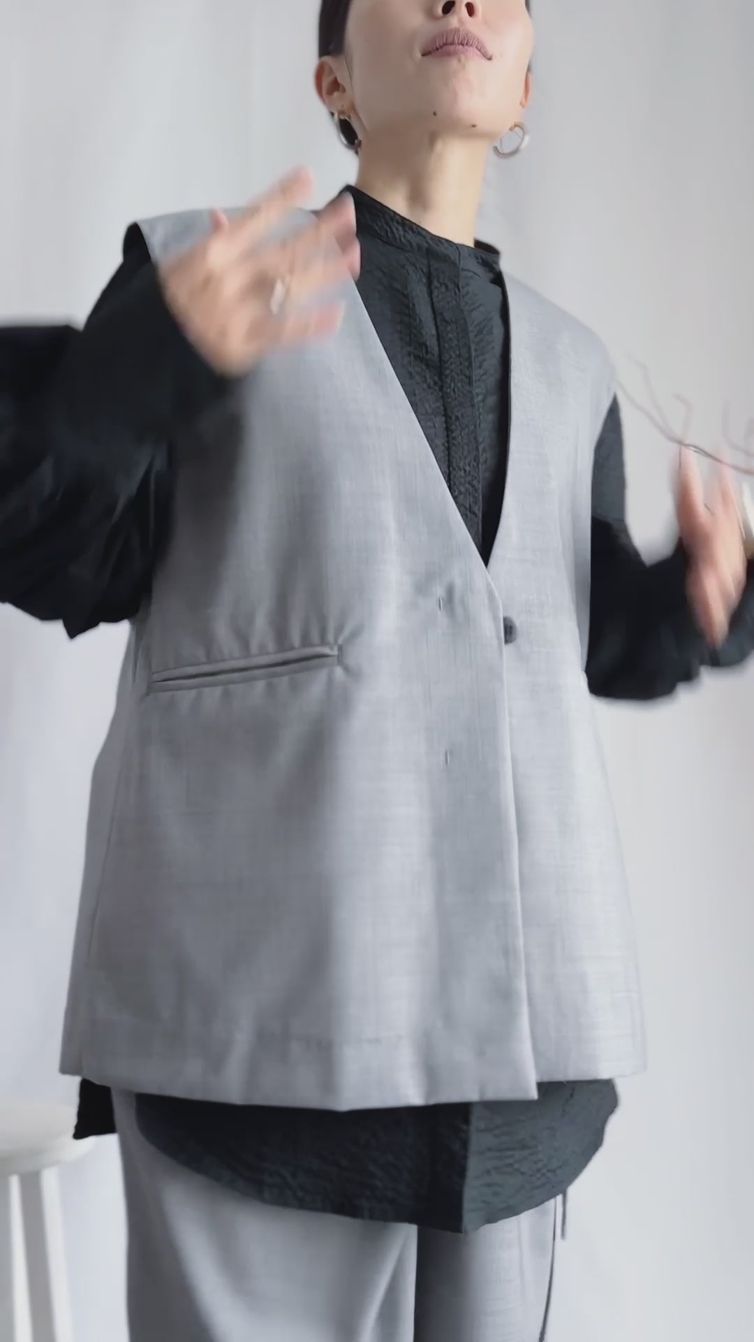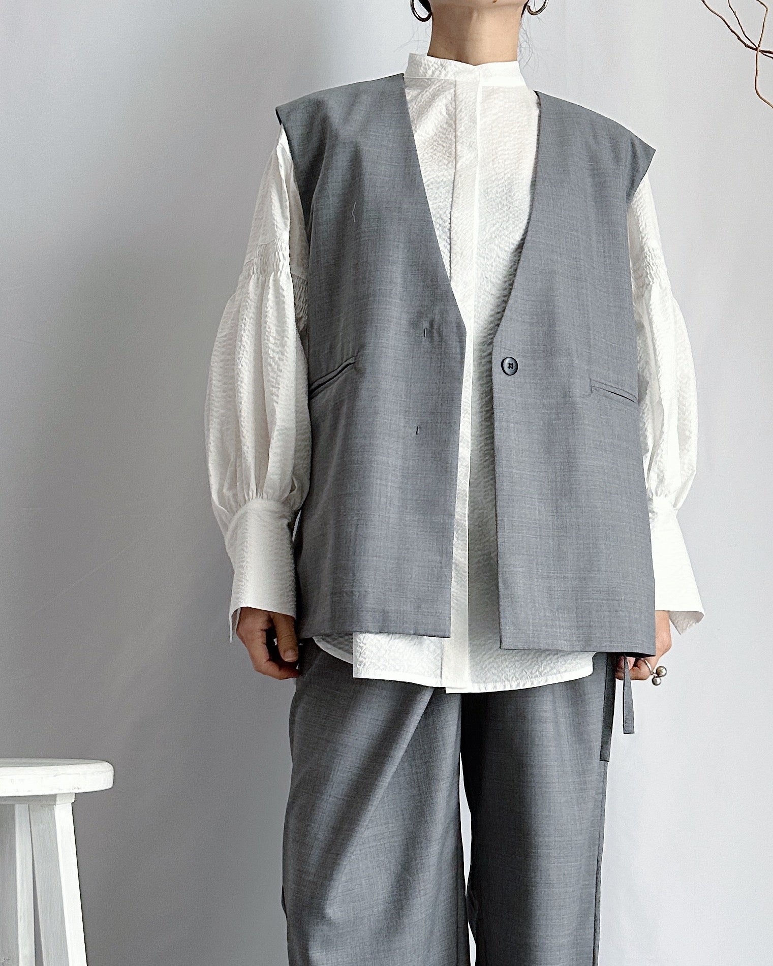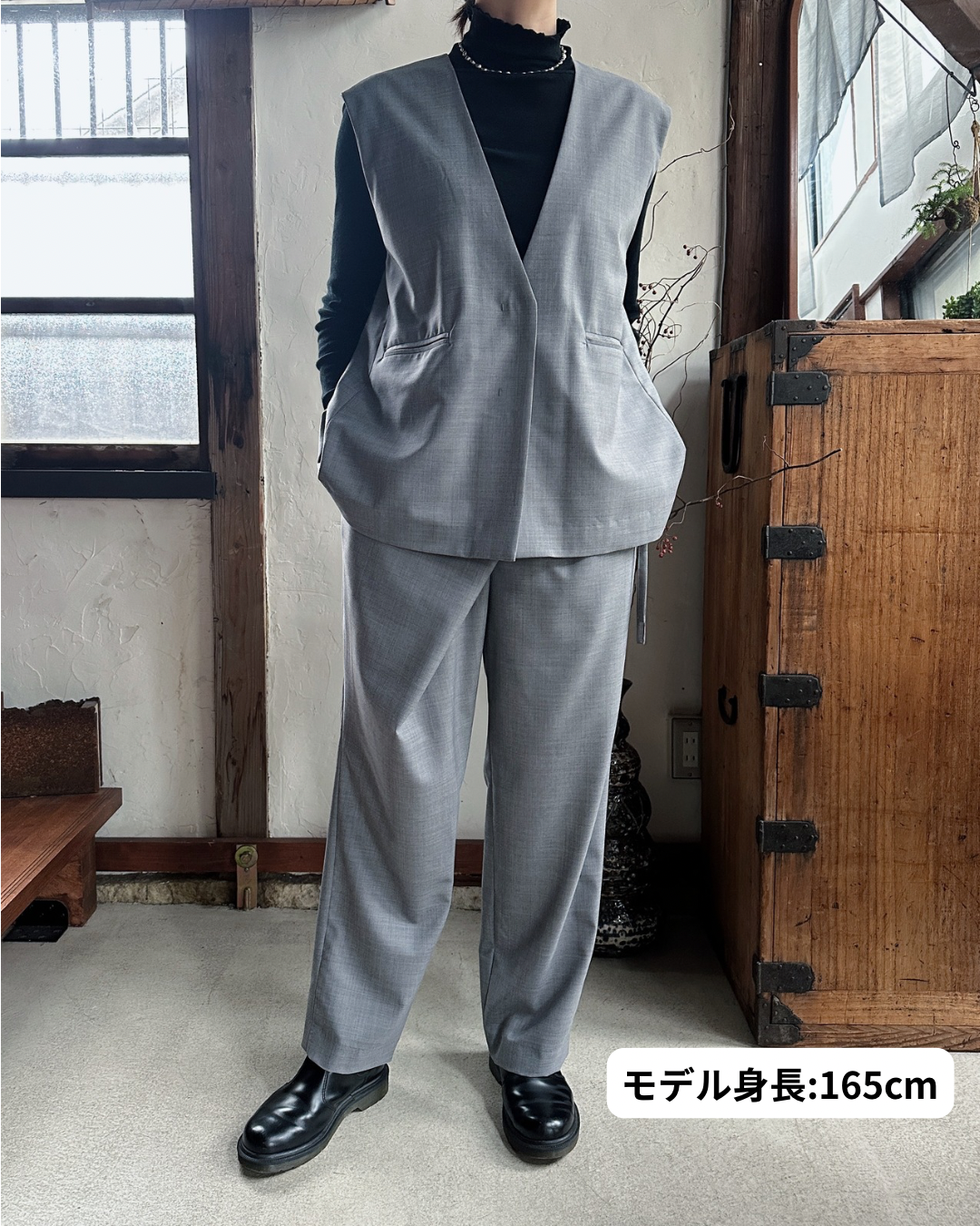 同素材のトロピカルウールラップパンツと合わせていただくことで、